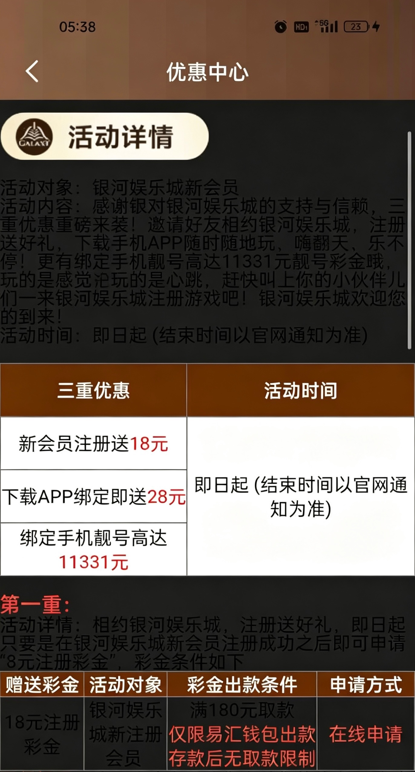 【银河1331】注册彩金
