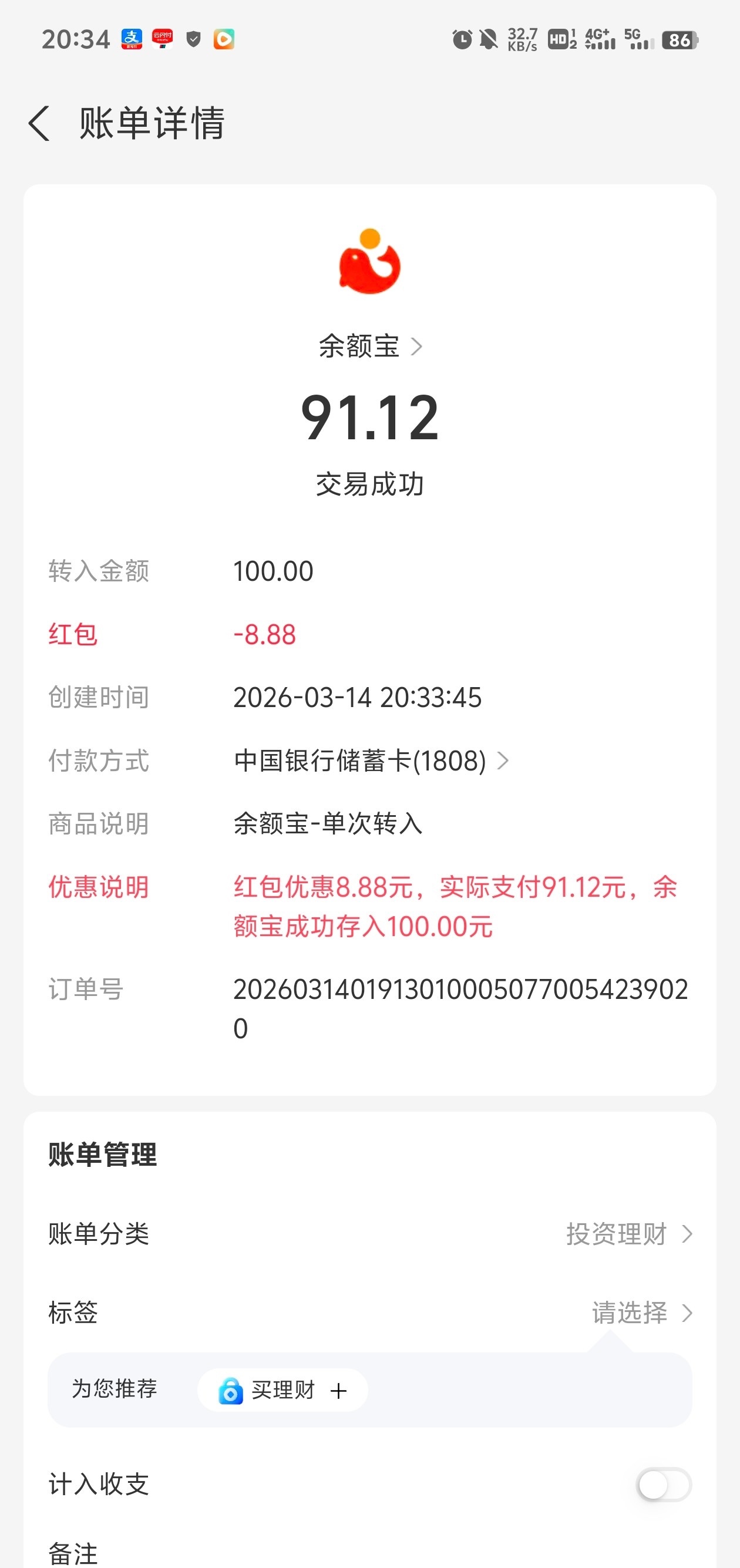 119积分兑换8.8红包!转入余额宝100元抵扣8.8!显示是最高8.8实际就是8.8