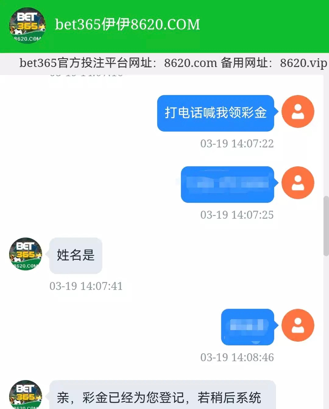 电话回访领18 直接去找客服报手机号说领彩金 注册也有回访也有 有就有没有就没有 问有没有限制 我没打出来 好像不能电子 网址8620567.com