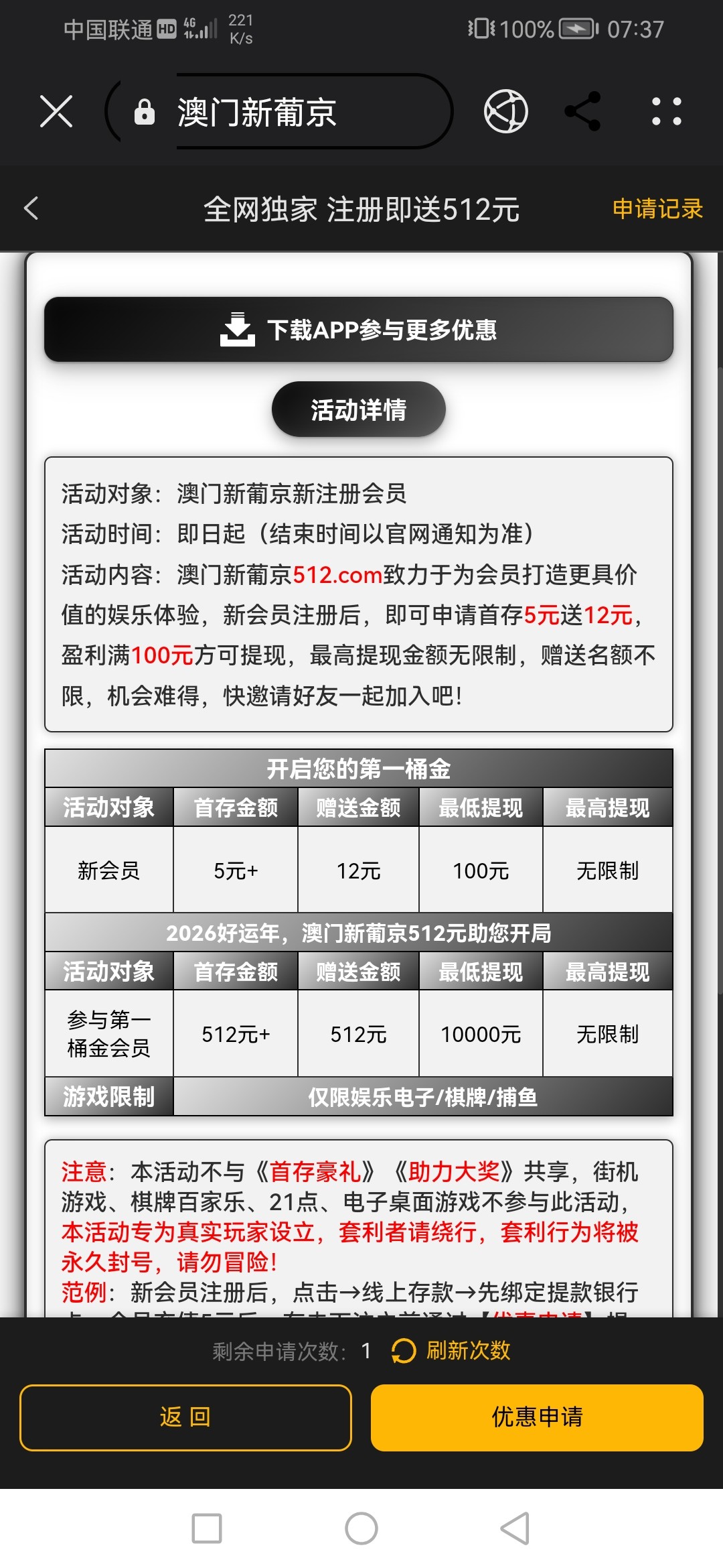 注册绑定银行卡 优惠→综合→自助申请即可